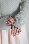 60/-のスーピマ糸を28Gで編んだ天竺ボーダー。 超長綿のスーピマの原綿を使用しているため、 肌触りがよく、長く使い込んでも毛羽が出にくい素材です。
