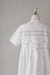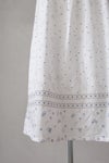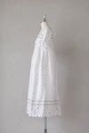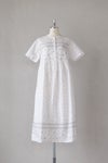 生地同色の刺繍糸で施した刺繍の中に、 部分的に配色の刺繍糸を入れてアクセントをつけたアイテム。 1枚で着用しやすいバンドカラーは、日差しから肌を守るデザイン。 夏の暑い季節のお出かけにぴったりの1枚です。 取り外しのできるペチワンピース付き。