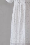 初夏の訪れを告げる「びわ」の実を、柔らかな刺繍で表現したワンピース。 涼しげなコットンリネンの素材にいくつかの柄を組み合わせた刺繍を施しています。