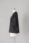 袖山にタックを入れた、立体的なシルエットの袖がデザインポイント。 後ろ衿ぐりに「buoy」のロゴを同色で刺繍。。 ブラウス感覚でコーディネートに使えるTシャツです。 透け感はなく一枚で着ていただけます。
