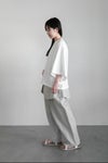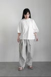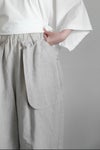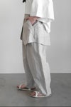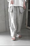 経糸に綿40/2 緯糸にリネン1/40の糸を高密度に織りあげた生地を使用したパンツ。 仕上げにイタリア製のエアタンブラーで柔らかくワッシャーを施した 高密度でありながら、肌ざわりが良くソフト感のある素材です。