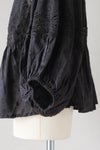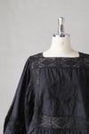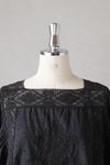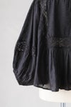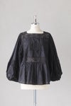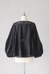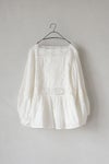胸元に同色糸で施された華やかなモチーフ刺繍が目を惹く1枚。袖、首ぐり、モチーフ切替え部分をレースであしらった贅沢なアイテム。ボリュームのある袖はふんわりとリラックス感あるスタイリングに。袖口にゴムを入れ、ブラウジングも可能です。
