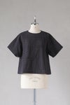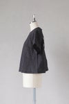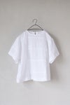 コンパクトな丸首のプルオーバーブラウスですが、 袖付け回り50とゆったりとしており、 裾周りにフレアーのでるAラインシルエットなので、 涼しく着ていただけるデザインです。 ロングスカートやワイドパンツと相性のよい短めの着丈。 夏のシンプルなコーディネートに映えるブラウスです。