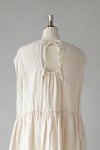 アンティークのような風合いのオーガニックベルギーリネンを使用したノースリーブワンピース。 リネンの程よいシャリ感が肌触りよく、春夏に気持ちの良い素材感です。 大きく開いた背中のホールと、リボンがアクセントに。