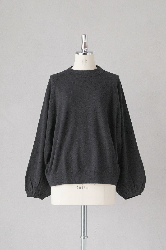 肌触りの優しいハイゲージのニット。袖口をリブ編みにしてギャザーを寄せ、ふんわりと丸みのある袖のシルエットが特徴的です。