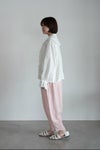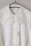 大きめの襟とフリル袖が目を惹くアイテム。カーディガンやニットから襟を出すスタイリングもお勧めです。 素材には、程よい柔らかさもハリ感もあるリネン生地を使用。着込むほどに風合いが増し、長く愛用できる一着です。