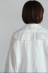 アンティーク調のレースフリルを随所にあしらい、クラシカルな雰囲気を纏ったブラウス。甘さを抑えた直線的なシルエットに落とし込むことで、日常にも取り入れやすい表情に仕上げられています。