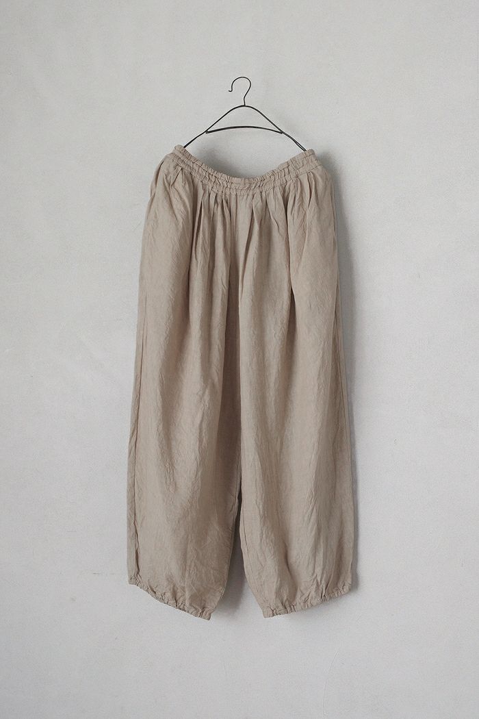 ふんわりとしたボリューム感が魅力のリネンパンツ。 風合い豊かな清涼感のあるリネン素材は、 初春から初秋まで心地よく着用いただけるアイテム。
