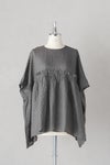 胸元で切替え、ギャザーを寄せて、フリルのようなデザインを施すアレンジを加えた1枚。幅広で風の通り抜けるゆったりしているので、盛夏にも着用しやすいアイテムです。 両サイドが長めのデザインで、パンツスタイルと相性がよくバランスの良いレイヤードが楽しめます。
