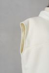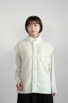 内側は毛足の長いボアで、ふわふわした着心地が気持ちの良い1枚。フロントの小さなアンティーク風のボタンや、少したちあがった襟のデザインなど、ヴィンテージのベストから着想を得たデザインとなっています。