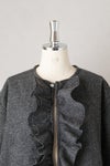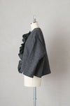 暖かな英国のウールへリンボンツイードを使用した贅沢なブラウス。 フロントの大きめフリルが目を惹く1枚です。