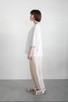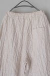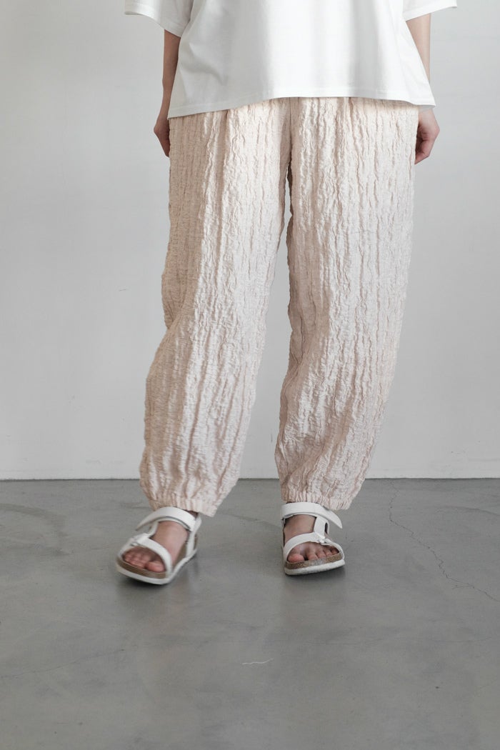 布帛ライクなジャガードファブリックで仕上げたパンツ。 生地の凹凸感がシンプルなスタイリングにアクセントを加えてくれる1枚です。