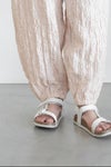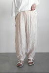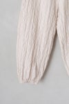 ウエストは総ゴム+紐で調節できるデザイン。 裾はゴムが入っており、やや丸みの出るシルエットになります。