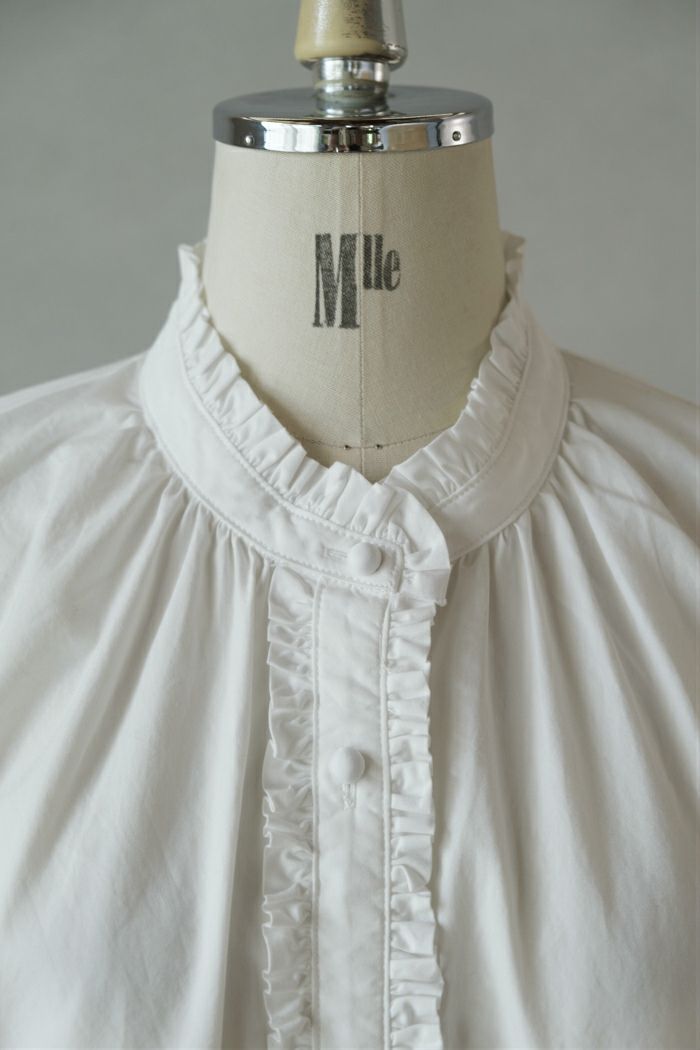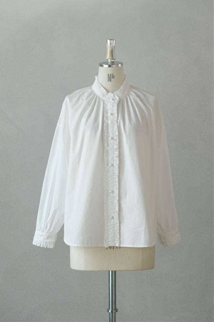 コットンライトサテン 衿フリルブラウス(春秋冬)