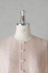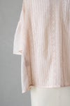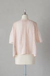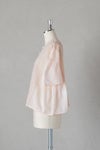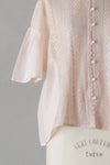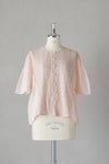 身頃の前後に繊細なピンタック&リバーレースを施した華やかなデザイン。 共布のくるみボタンも可愛いアクセントになっています。 たっぷりギャザーを寄せ、ふんわり広がる袖は上品で軽やかなシルエットです。