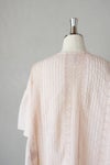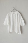 200年前の機械を今もゆっくりと動かしながら編まれたリバーレースと、 とても柔らかな薄手のインドコットンをふんだんに使用しており、 とてもロマンティックで贅沢な一着。 ぱっと見、ヨーロッパのアンティークのように見えるのは、 材料が200年前と同じものだから。 ピンタックもすべて手作業で施されており、 丁寧に作られた一着です。