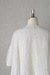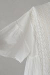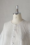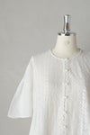 200年前の機械を今もゆっくりと動かしながら編まれたリバーレースと、 とても柔らかな薄手のインドコットンをふんだんに使用しており、 とてもロマンティックで贅沢な一着。 ぱっと見、ヨーロッパのアンティークのように見えるのは、 材料が200年前と同じものだから。 ピンタックもすべて手作業で施されており、 丁寧に作られた一着です。