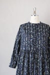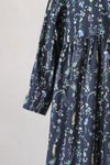 華やかな花柄にクルミボタンが並んだワンピース