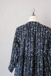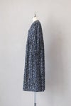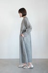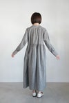 フロントのくるみボタンと、 袖口のギャザー、ウェストでの切り替えなどなど、 女性らしく大人っぽい要素をバランスよく盛り込んだワンピース。 生地作りからオリジナルの仕上がりにこだわった一品。
