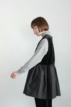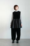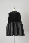 ウエストから上は上品なベロア素材、 下のギャザー部分はコットンタイプライターを使用しており、 重くなることなく、軽やかな印象で着こなせます。 タートルインナーなどに重ねてレイヤードを楽しんでいただけるアイテム。 ボトム次第で、軽いパーティシーンにもおすすめです。
