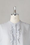 たっぷりのフロントフリルがアクセントのリネンブラウス