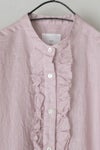 きちんと見えながらもフリルの遊び心が女性らしいブラウス。肌触りの良いフレンチリネンを使用した清涼感のあるアイテムです。