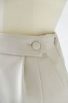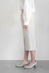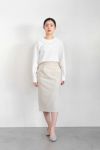 身体に張り付かない、適度なゆるみのあるストレートシルエットです。 左サイドのフロントタックは裾から20cm上位置まで縫い付けてあり、 ヒップに沿うきれいなヒップライン。
