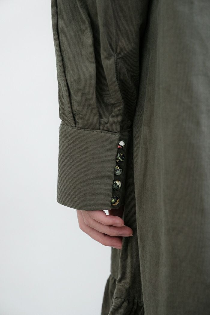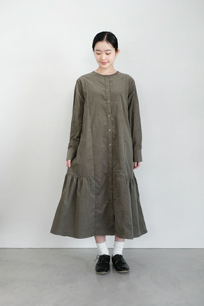 コットン細コール 切替ギャザーワンピース(23AW)