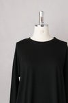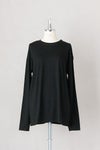 肩が少しドロップするゆるめの身幅で、ヒップの隠れる長め丈。 フィット感のよい伸縮性があり、着心地のよい一枚です。 カジュアルなのに、どこか女性らしい雰囲気が漂い、 程よい保温性もあるので、秋冬インナーにぴったり。