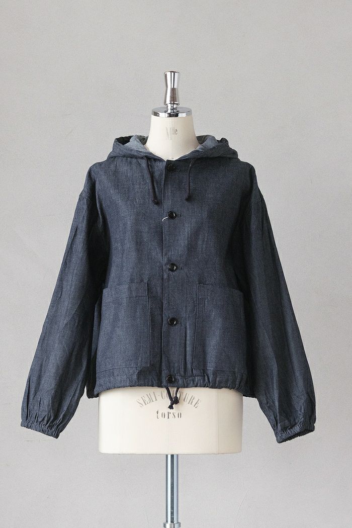 ライトオンスの軽いデニムを使用したフーディシャツブルゾン