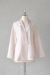 前開きのリボンがさりげない装飾を添えるテーラードジャケット。 まるでシャツのように気軽に羽織れる軽やかなアイテムです。