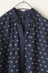 涼やかなスキッパー襟のカフタンワンピースに軽いジャガード素材を組み合わせた洗練された感覚の一着、 ワンピースとしてはもちろん、パンツと組み合わせたスタイリングも涼やかに決まるアイテムです。
