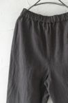 ウエスト総ゴム&ドロー紐のイージーパンツ。 腰周りにゆとりを加えながら、 裾に向かってゆるやかなテーパードラインです。 股上は深めなので、ふっくらとした立体感があり、 穿いた時のシルエットが可愛い。