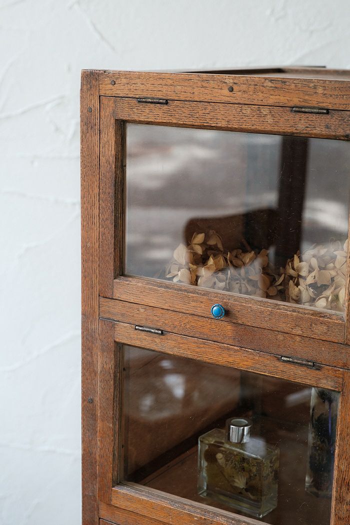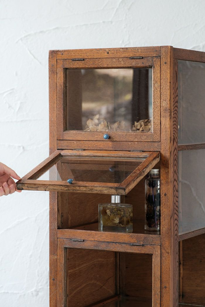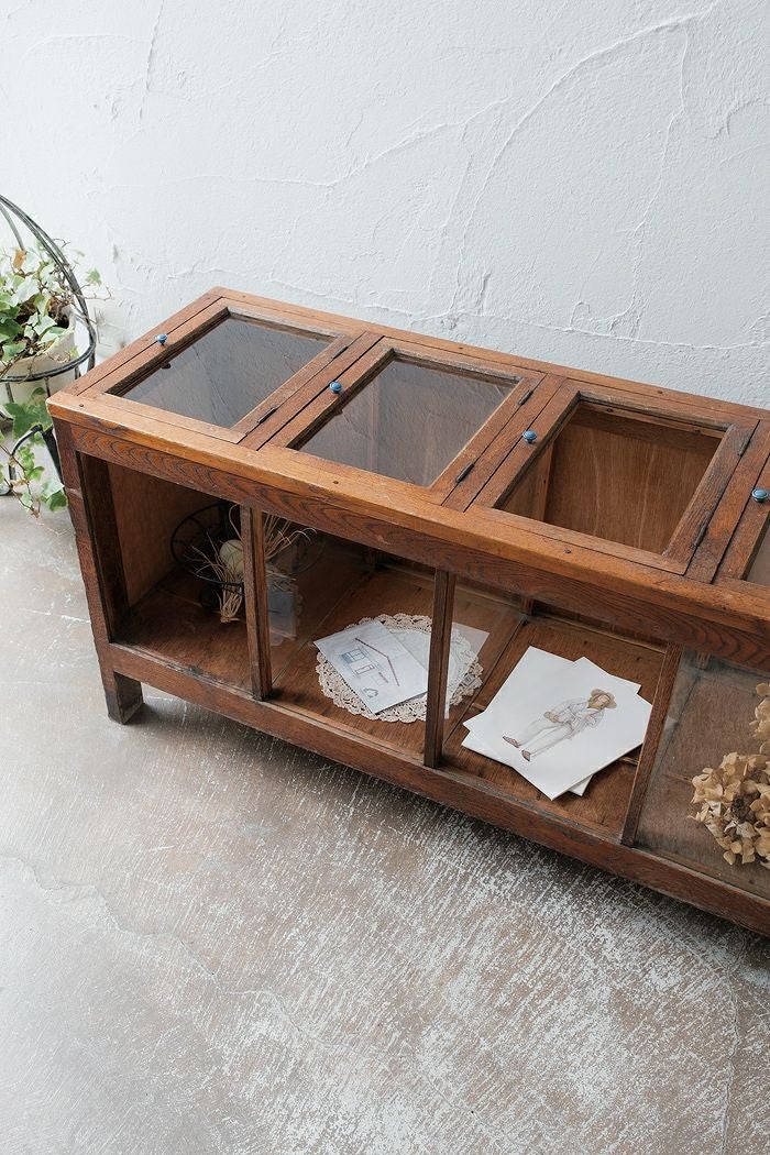 ガラス窓付きローキャビネット