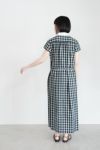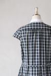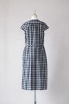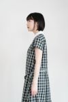 夏場に着るダークトーンのチェックが新鮮で、 いつもよりも少しだけきちんと感を演出。 品のあるロング丈は大人の落ち着いた雰囲気が漂い、 小ぶりな白の丸襟はクレリックにしたことでトラッドな印象に。 ノースリーブが苦手な方でも着やすいキャップスリーブです。