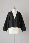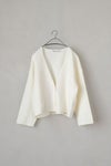 フロント部分はスナップボタン開きで、カーディガン感覚で気軽に羽織っていただけます。少し短めの着丈は、ワンピースにも合わせやすく、軽やかな印象に。