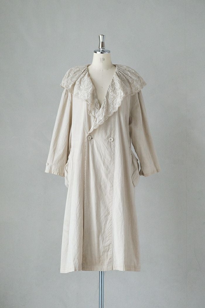 ふんわりボリュームのあるレース衿が印象的なコート