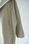 大きめの襟とワイドなシルエットが特徴のロングコート。