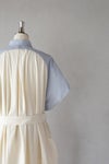 肩の切り替え線を使ってエプロンをしているように見えるシャツコート。