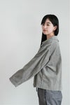 1940年代のフランス海軍のカバーオールと1970年代のスウェーデン軍のホスピタルシャツにそれぞれ着想し、アレンジをした大きな襟のショートジャケットです。