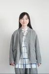 どのような体型にも美しく馴染むことのできるような着用感や見え方を目指し、四角いシルエットに立体的なパターンを載せたスタンドカラーのジャケットは、あえて極端に小さな裏地を配し、古い総裏のジャケットの裏地が縮んでしまったかのような様を再現しています。