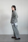 フロントはボタンのないデザインで、前身頃の左右に両玉縁ポケットあり。あえて極端に小さな裏地を配し、古い総裏のジャケットの裏地が縮んでしまったかのような様を再現。ナチュラルでリラックス感のある、大人カジュアルなアイテムで、同シリーズのパンツとのセットアップもお勧めです。
