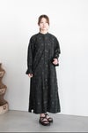 スタンドカラーで着やすいシルエットのワンピースに