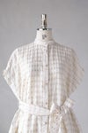 脇には二つの高さのループが付いていて、胸下あたりで結んで着たり、丈を上げて着たい方は下のループにベルトを通して、ウエストあたりで結んでブラウジングして着ることもできます。透け感のある生地ですが、インナー用のキャミソールドレスが付いているので安心。