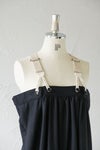 大人っぽく着られるロング丈のサスペンダードレス