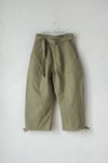 Native Villageの人気定番ダーツワイドパンツに、大きめのポケットと裾紐が付いたカーゴパンツ。裾を絞れるデザインのため、丈感がやや長めになっています。