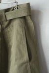 ダーツと接ぎ部分による、立体的なパターンが印象的な人気のデザイン。 裾にかけて緩やかに細くなるコクーンシルエットです。 長めのバックル付きベルトがポイント。 ウエストサイズが大きい場合、 ベルトで調整していただけます。両脇ポケットあり、裏地なし。