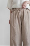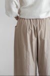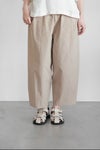 ウエストは総ゴムで着用しやすいデザイン。ハリコシを持ったコットン素材に洗いざらしたような柔らかな風合いも感じられるよう加工を施こした1本です。