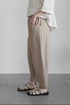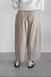 シンプルながらも両サイドのポケットがアクセントに。股上深めのリラックス感ある着心地で、ややテーパードした短め丈は、日々のスタイリングに幅広いシーンで活躍間違いなし。