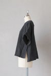 ふわりとしたフレアスリーブの半袖ブラウス。 脇に持ち出し付きの大きめスリットを入れて、 抜け感を出しています。 上品さがありつつ、 Tシャツのようにラフに着ていただけるアイテムです。